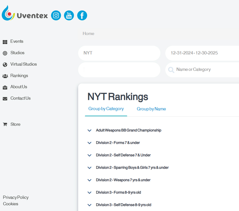 *** Make Note - it is the competitors responsibility to let us know if they have changed age, rank or division. We do not have access to schools personal information. We need the competitor to keep us updated continuously. Please read all rules of the ranking system.